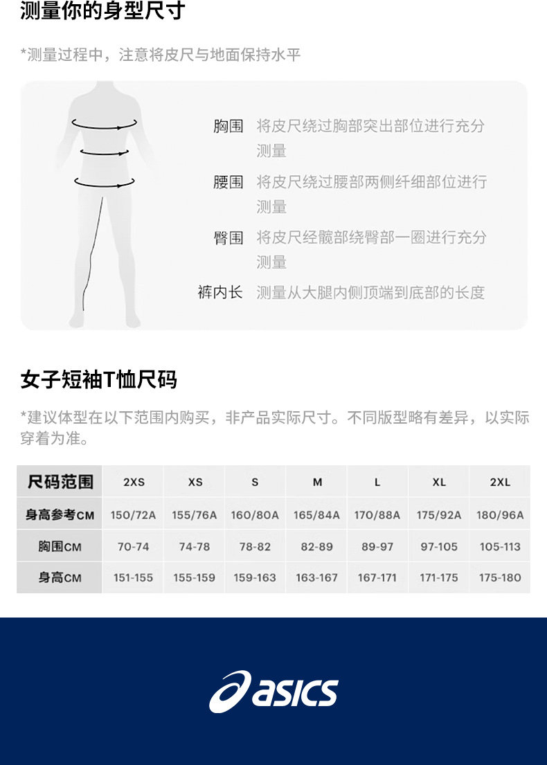 asics shirt size chart