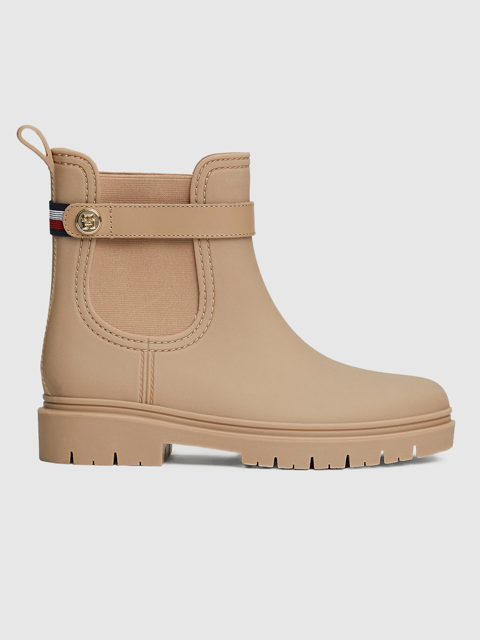 beige rain boots