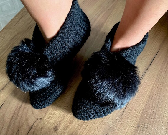 black slipper boots womens
