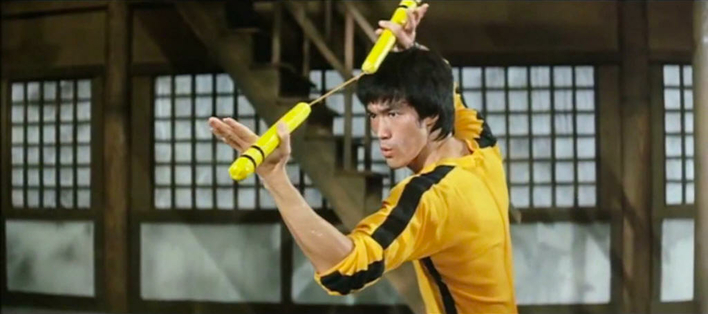 bruce lee using nunchucks