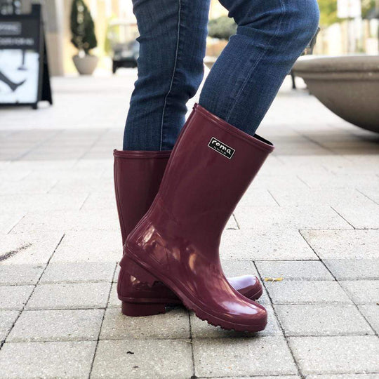 maroon rain boots
