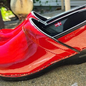 red patent dansko clogs