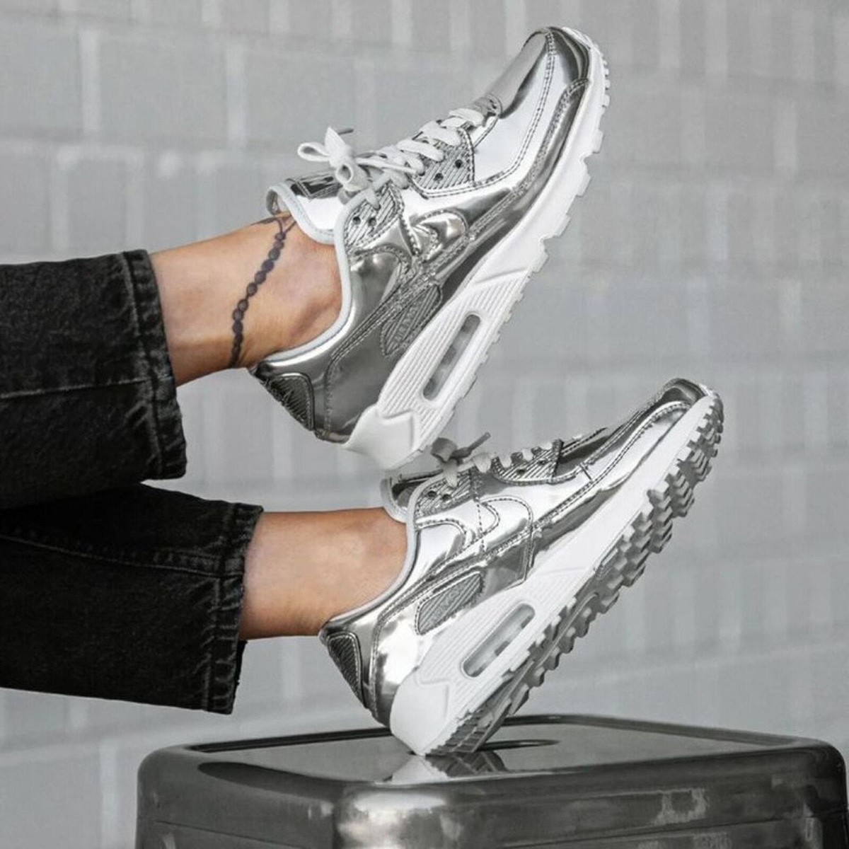 nike air max 90 silver metallic