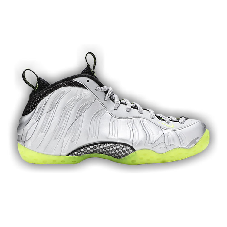 silver and lime green foamposites