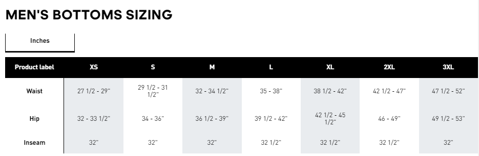 adidas size guide pants