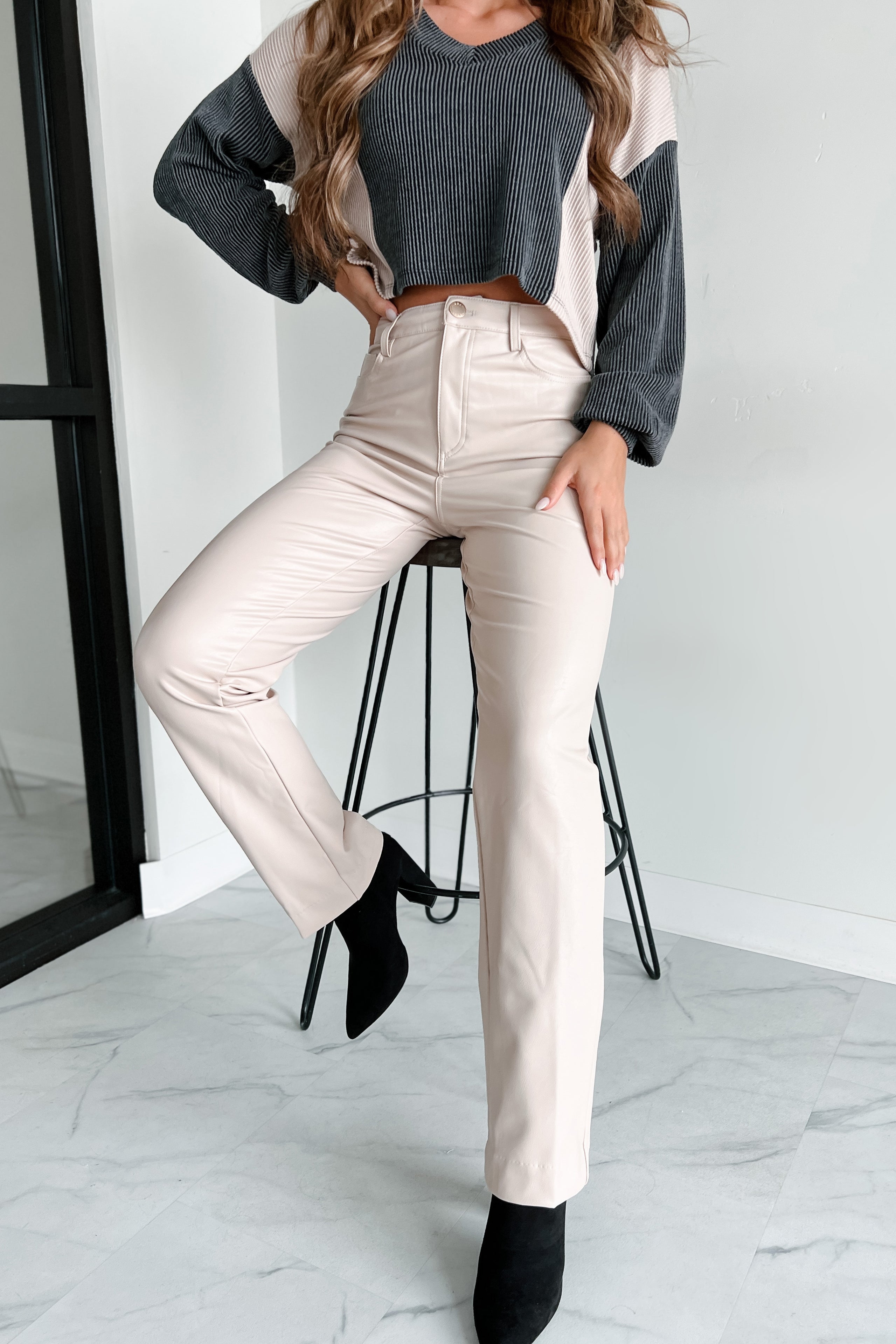 beige leather pants