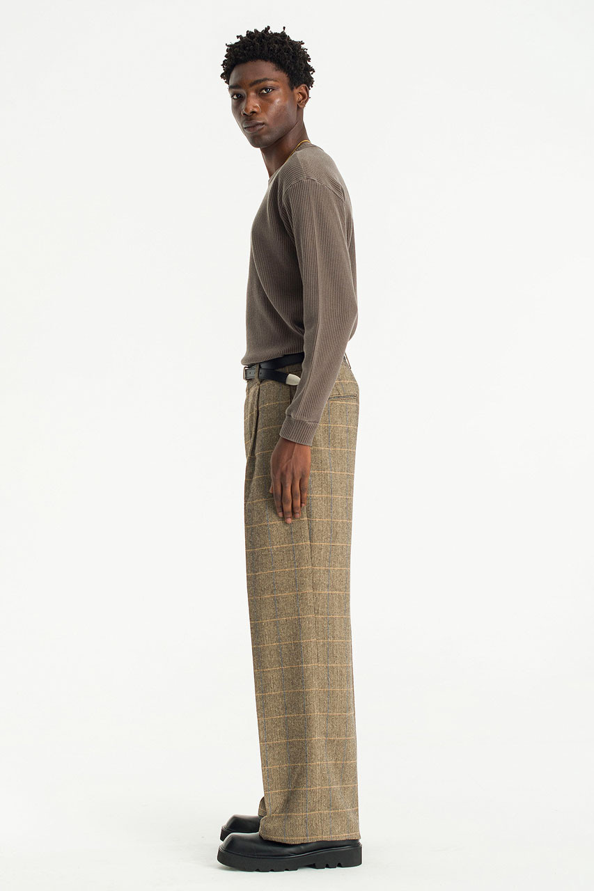 beige plaid trousers