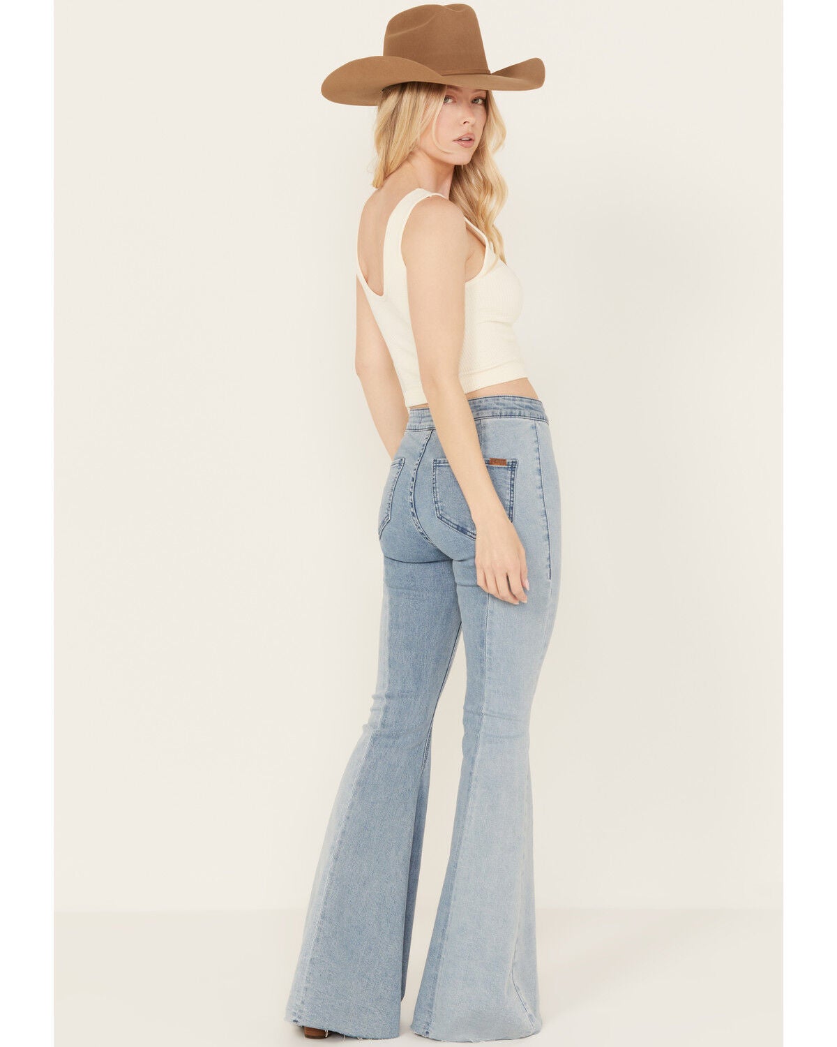 bell bottom light wash jeans