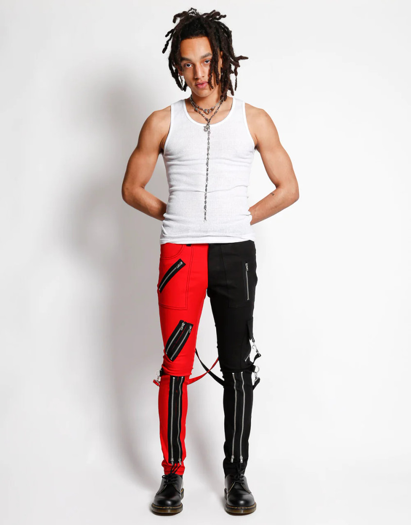 black and red split pants