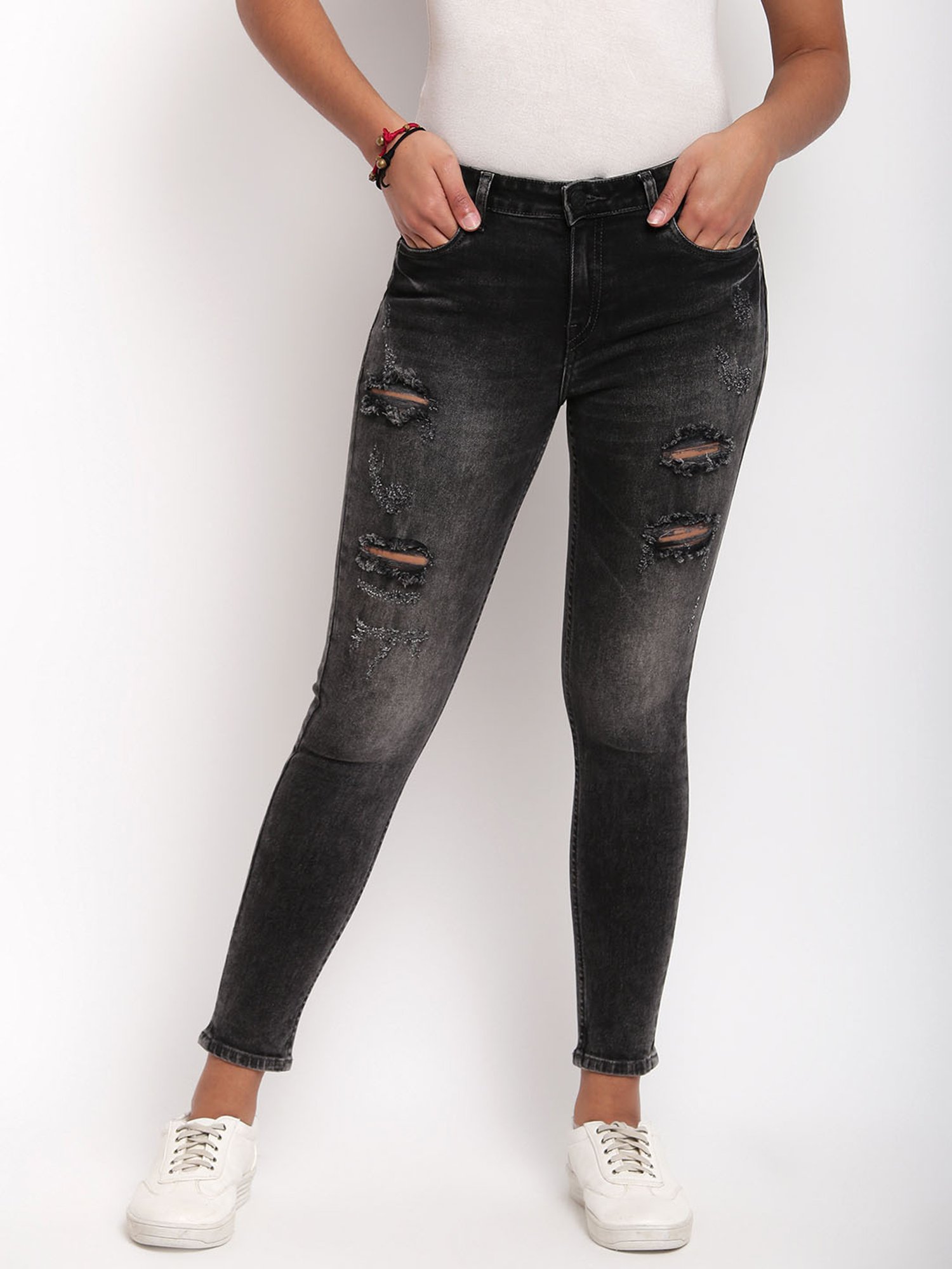 black distressed womens jeans