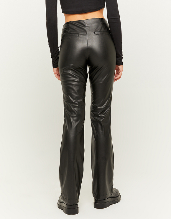 black faux leather flares