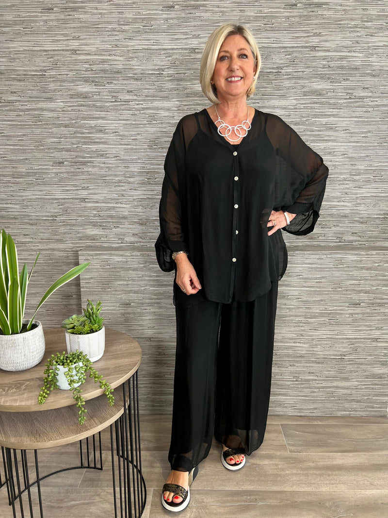 black floaty trousers