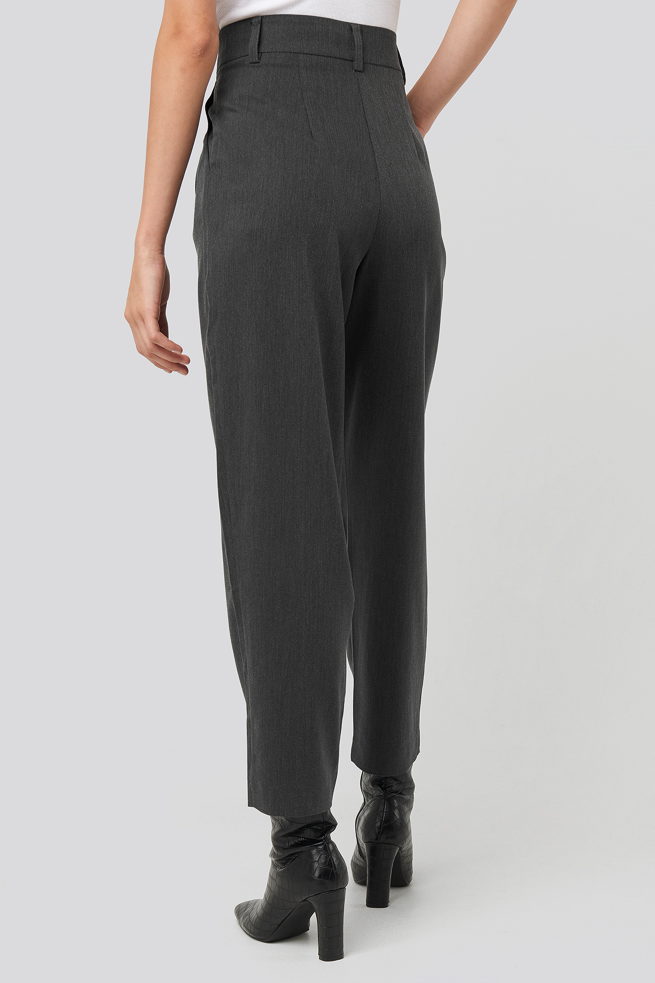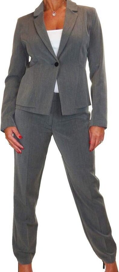 black jacket grey pants