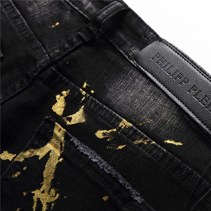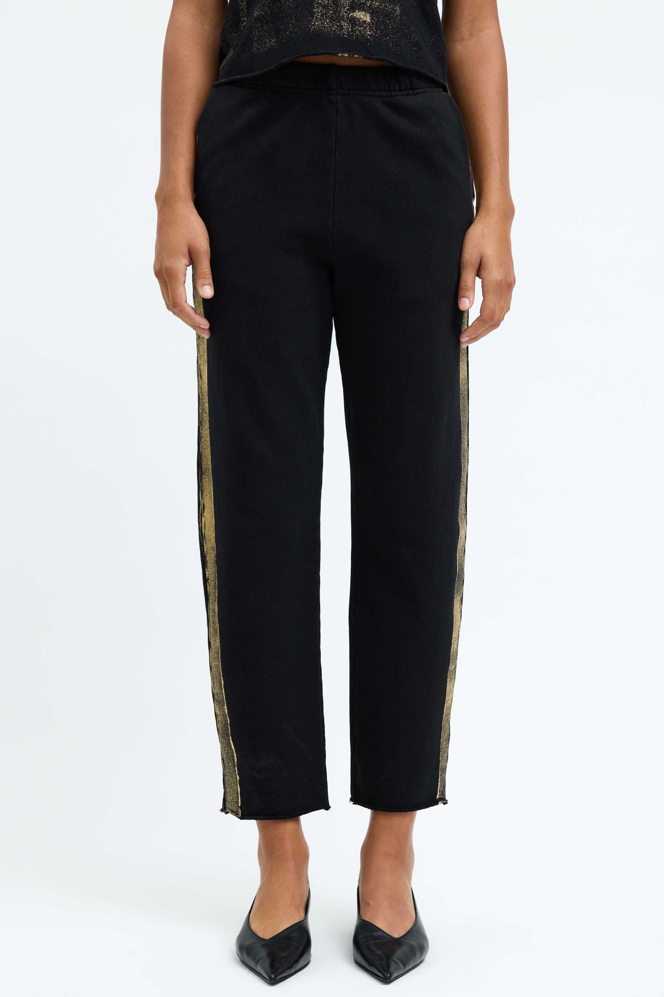black jeans gold stripe
