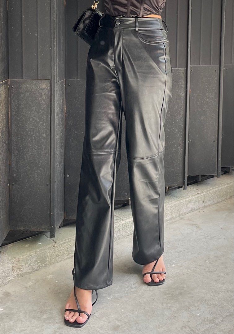 black leather pants shein