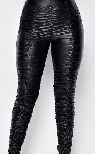 black liquid leather pants