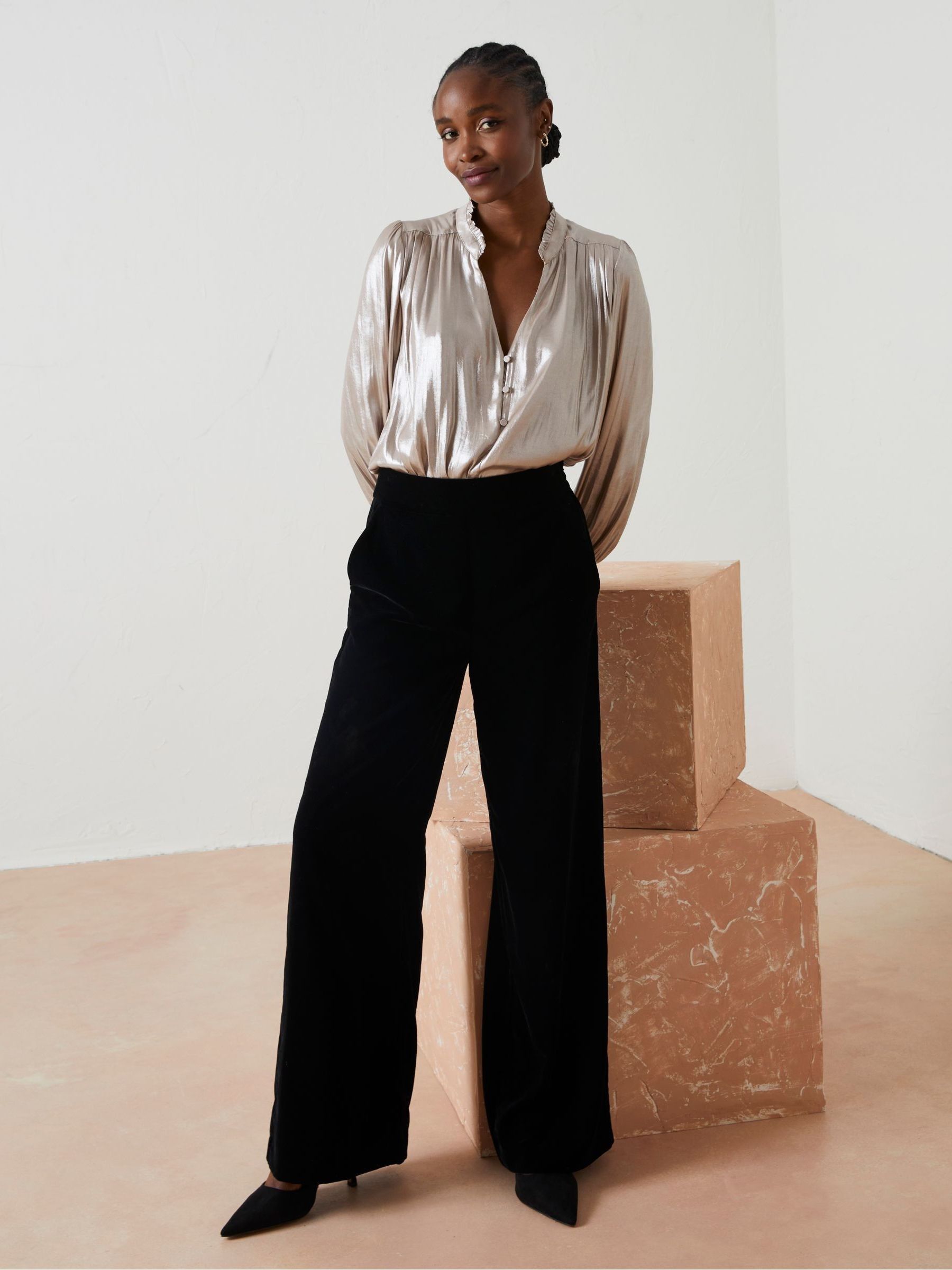 black open leg trousers