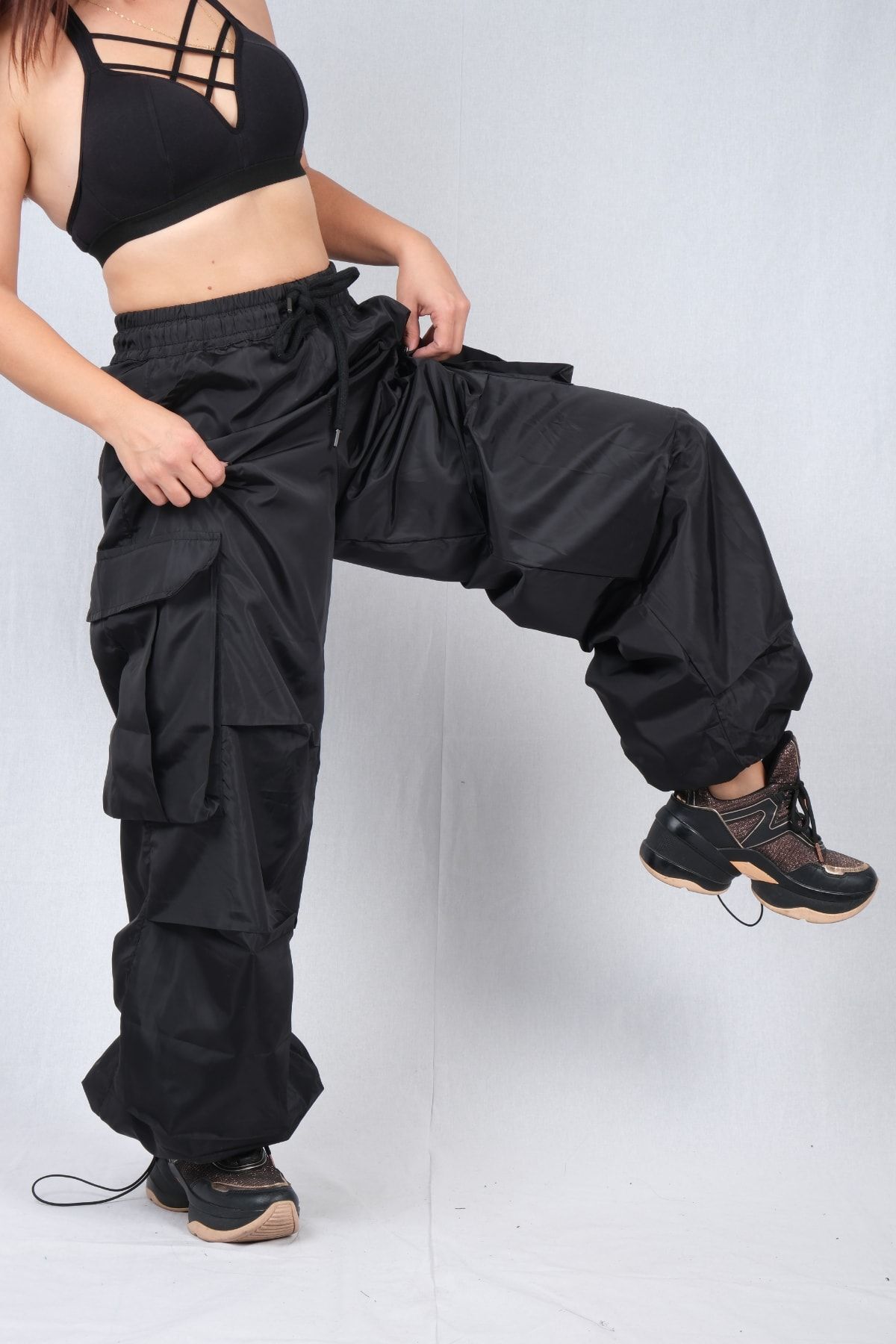 black parachute pants