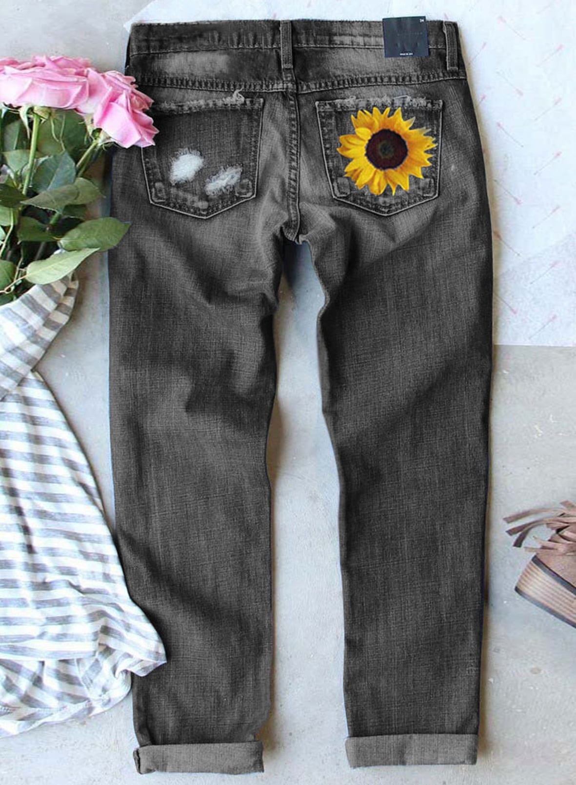 black patch work jeans