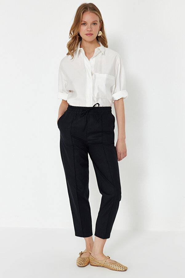 black pull up trousers