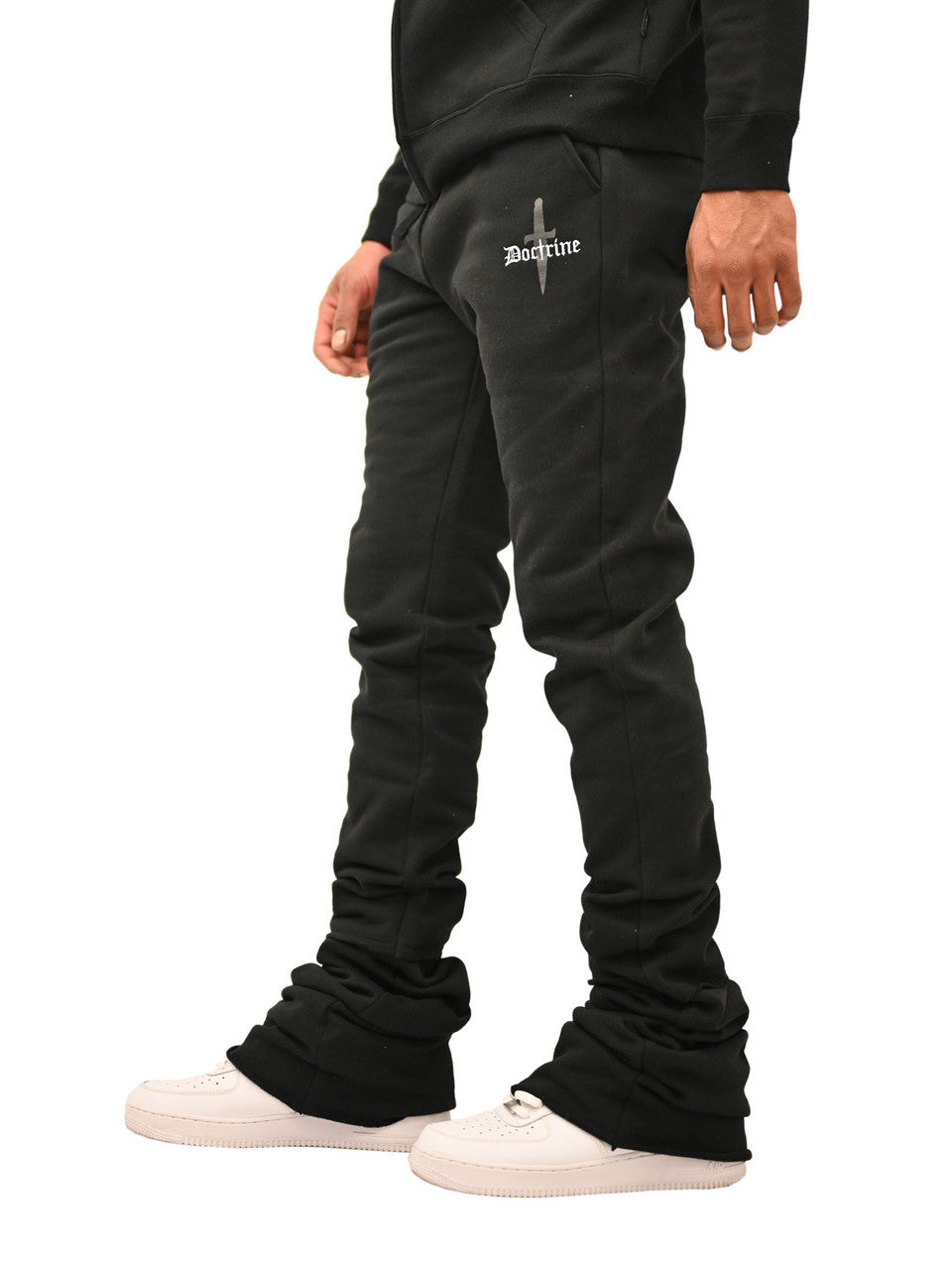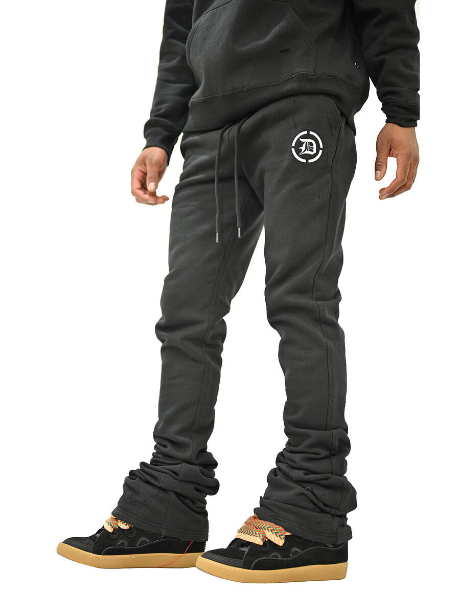 black stacked joggers
