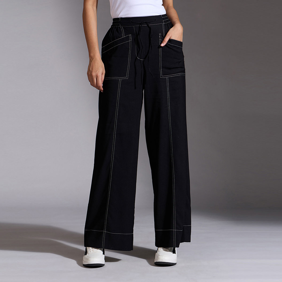 black stitch trousers