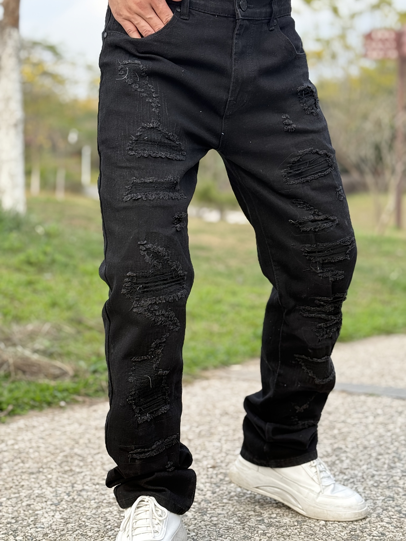 black stretch ripped jeans