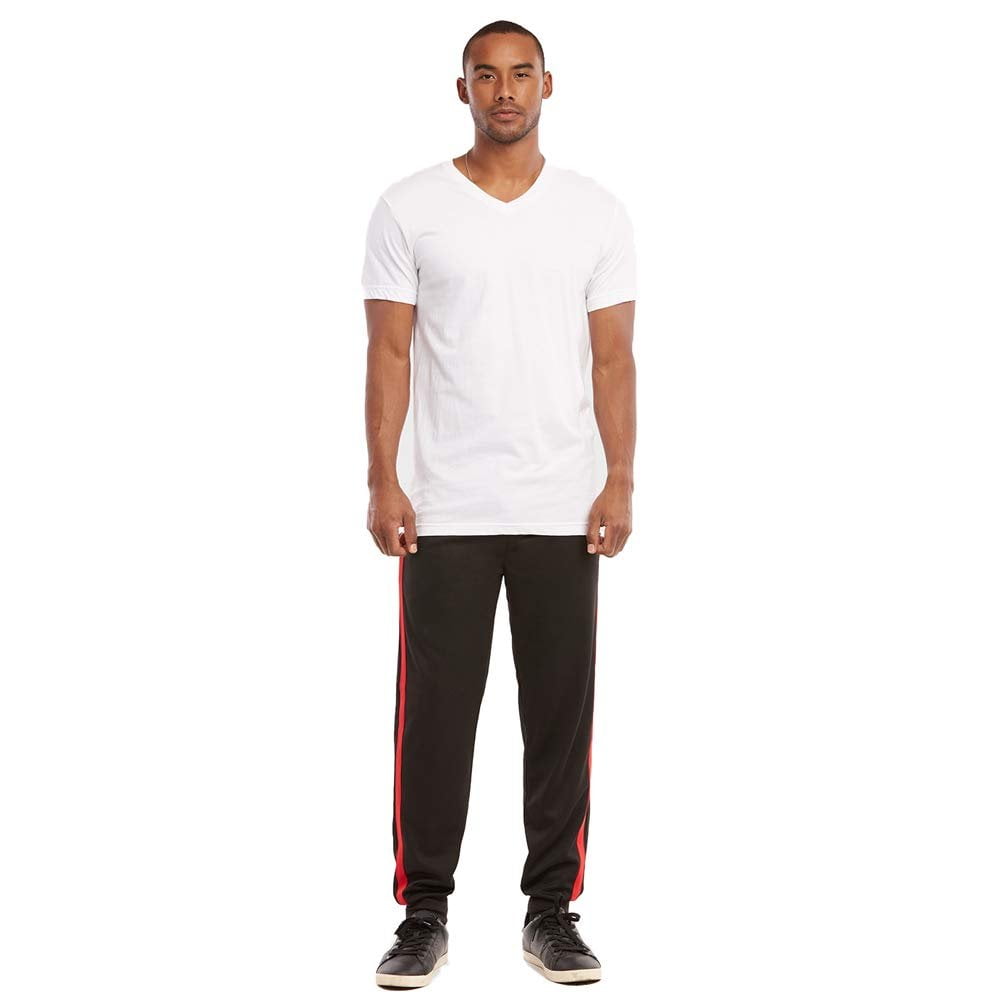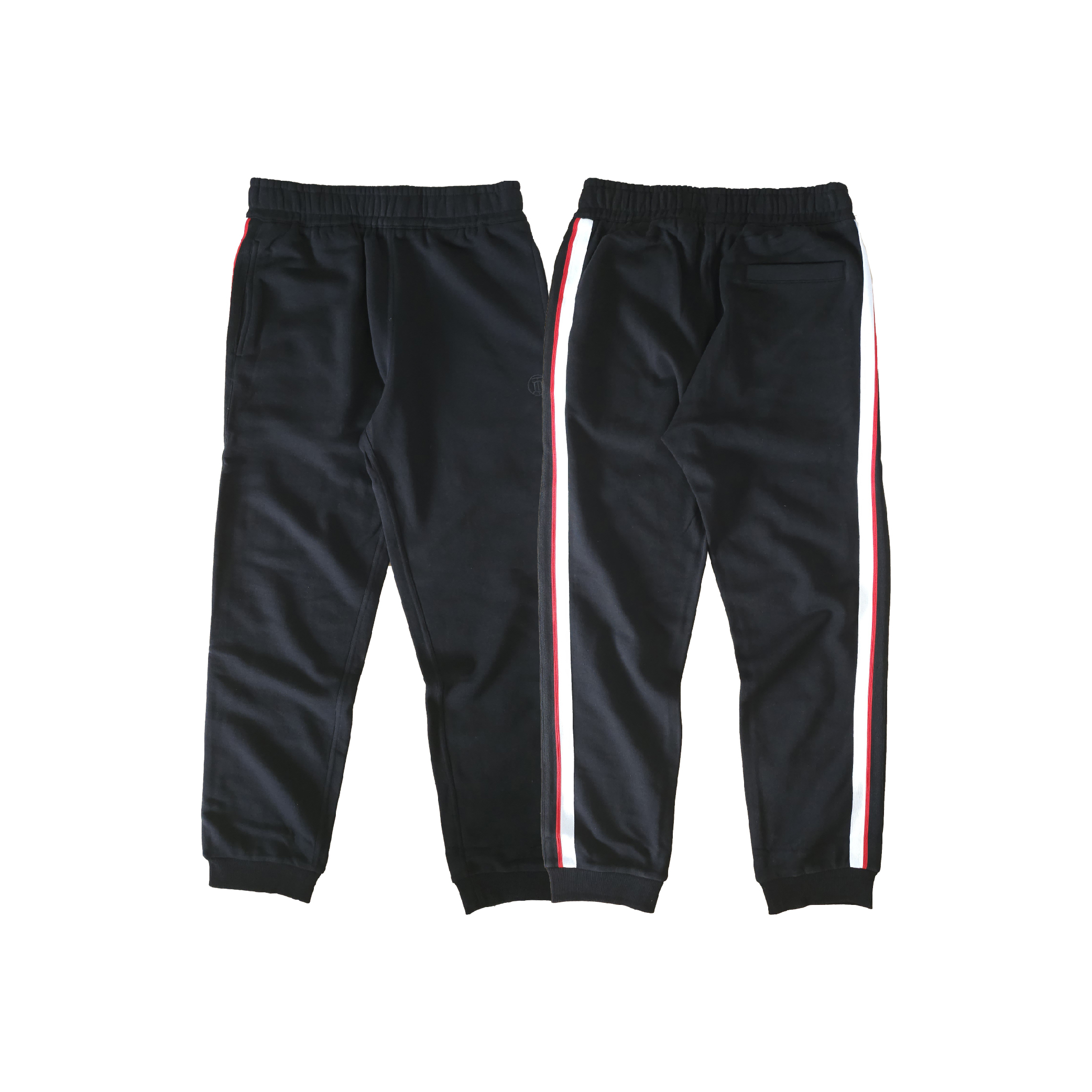 black sweats with red stripe