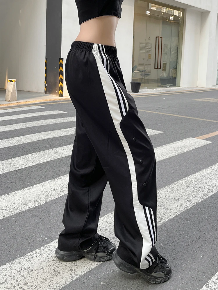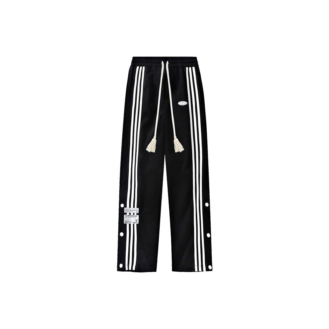 black sweats with white stripes