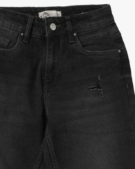 black wash distressed jeans