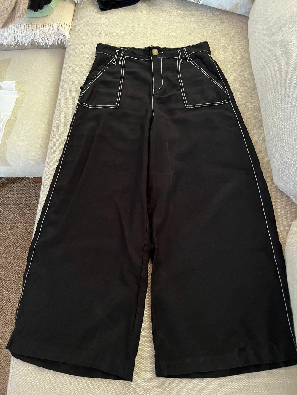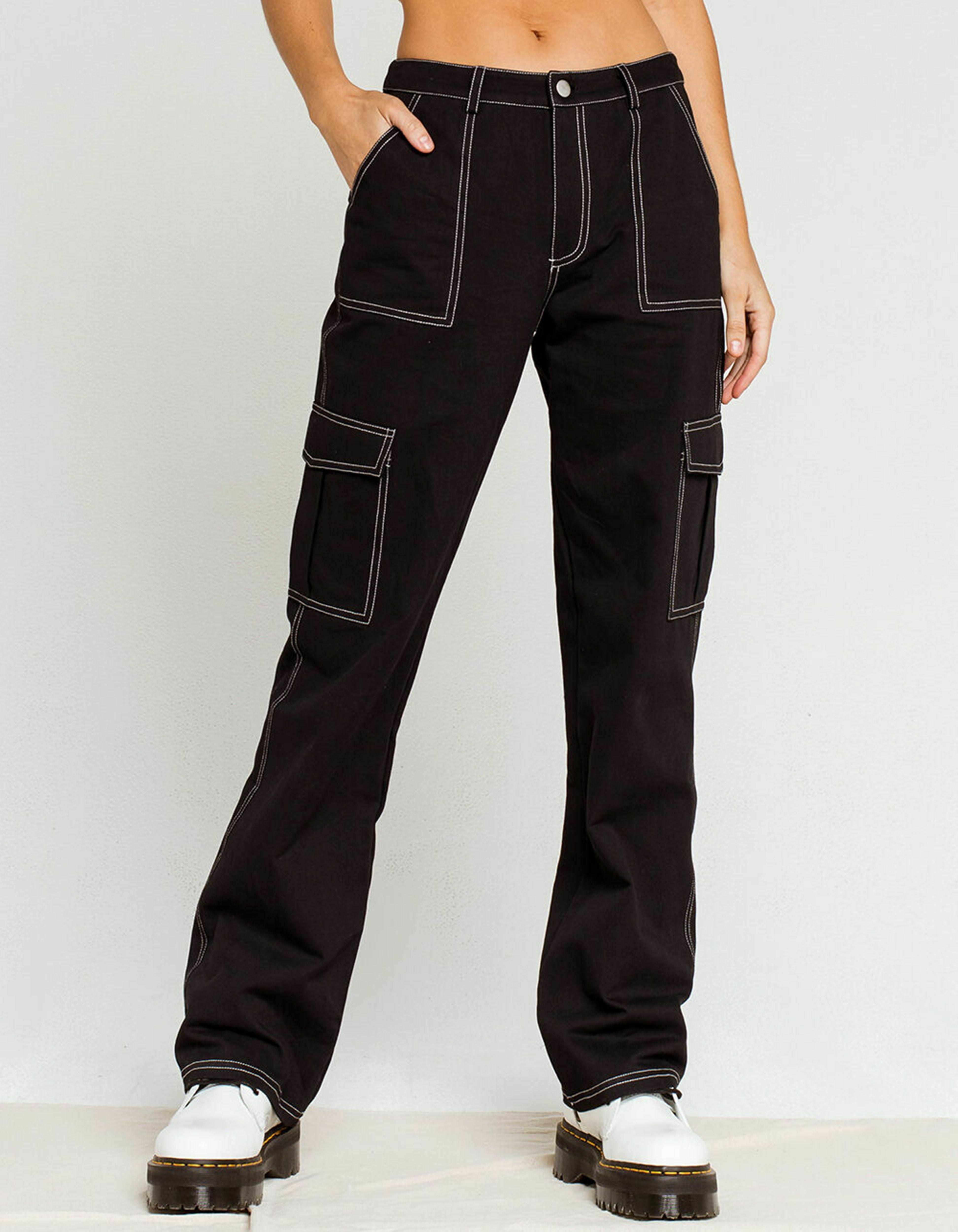 black white stitched pants