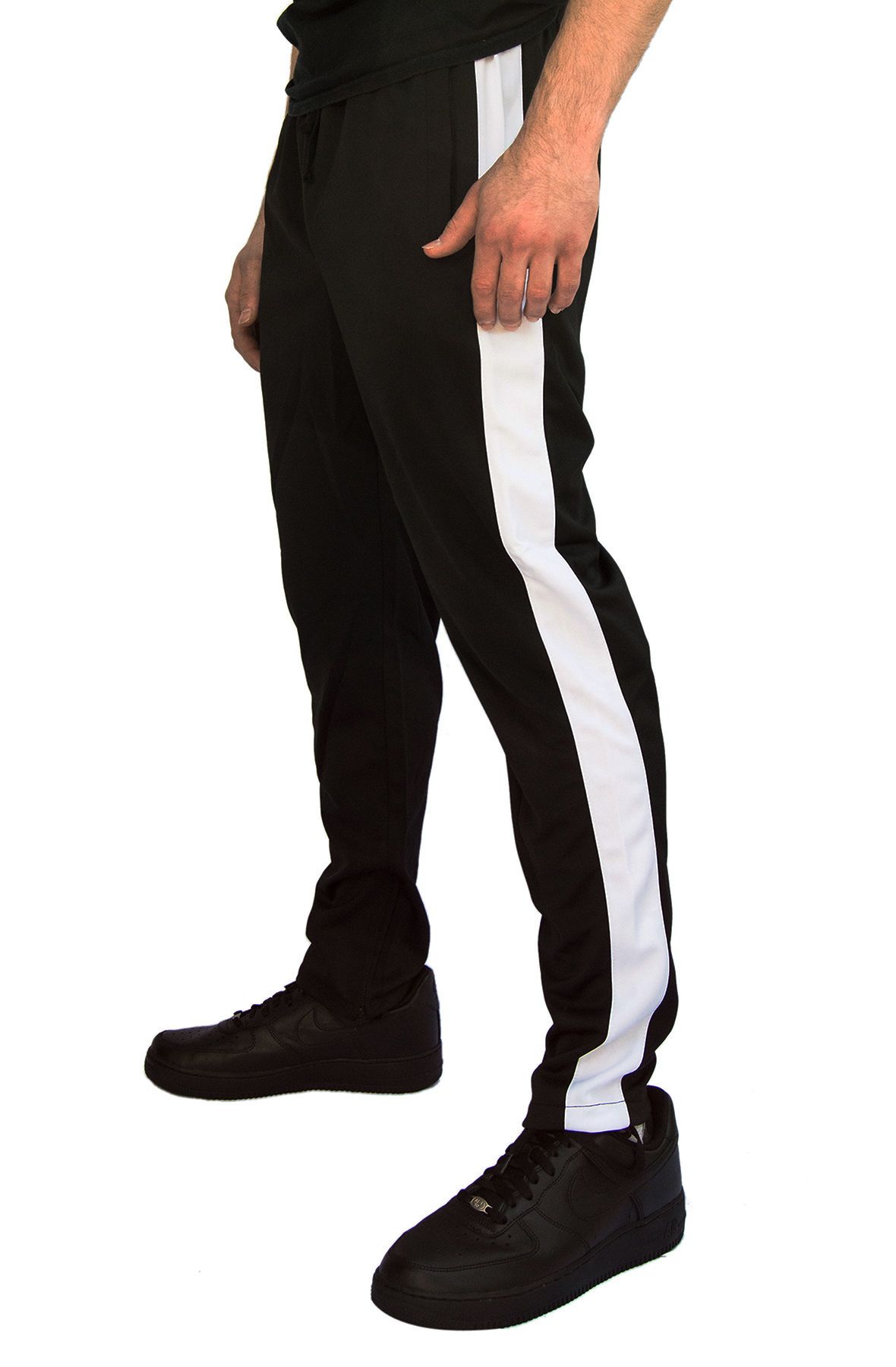 black white stripe track pants