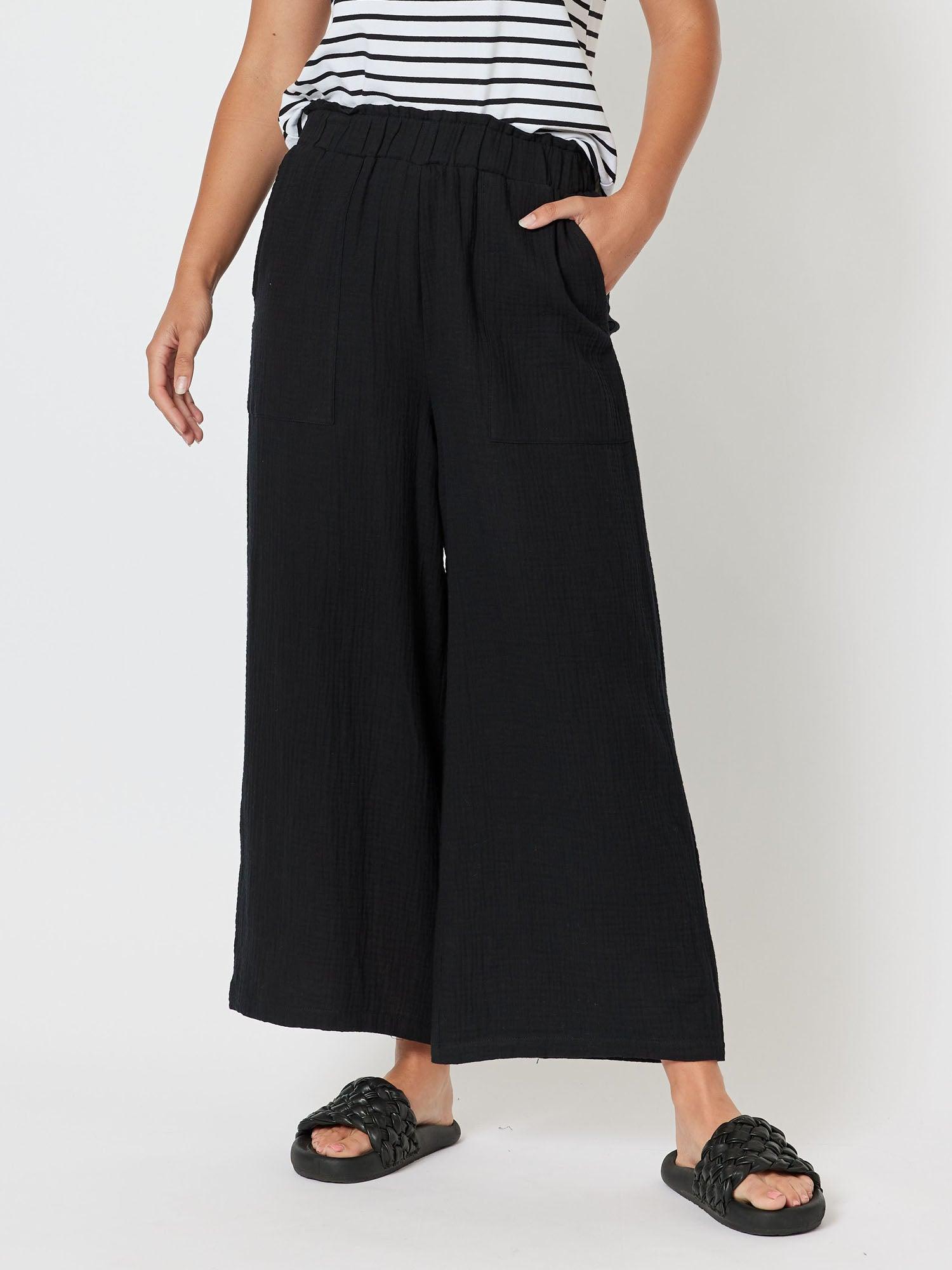 black wide leg pull on pants