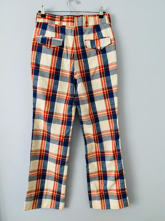 blue and orange plaid pants