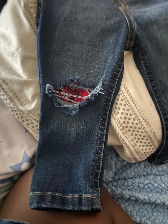 blue bandana patch jeans