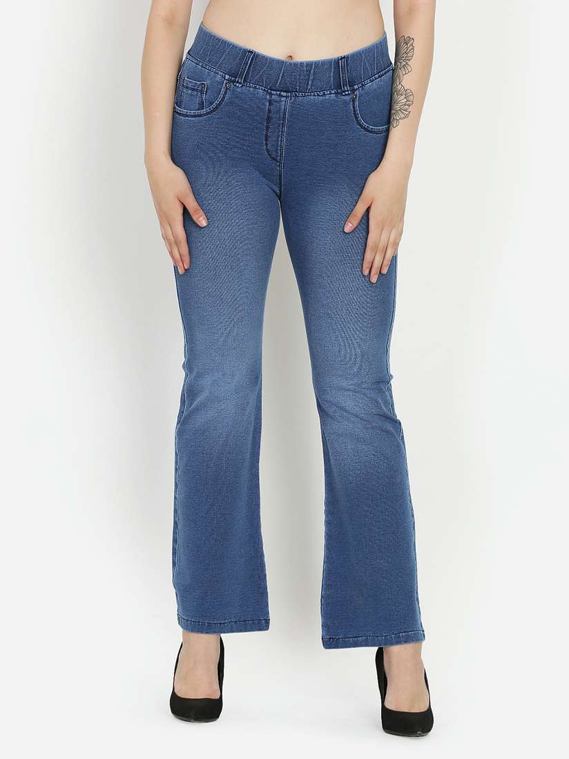 blue bootcut trousers