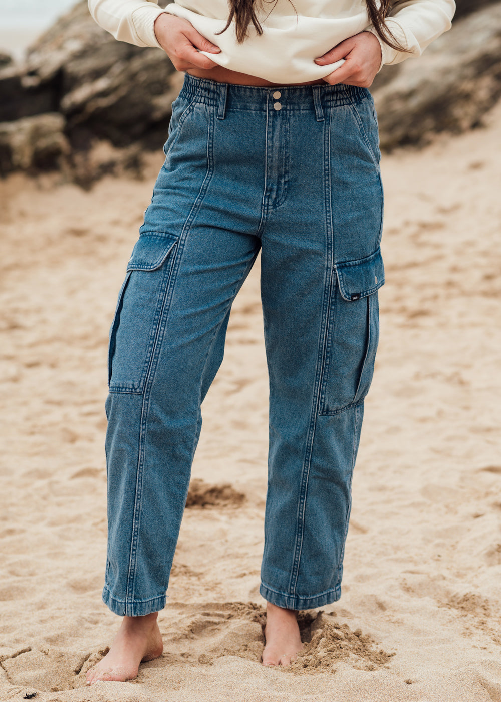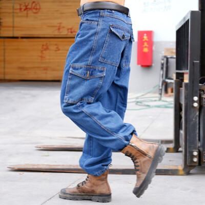 blue denim cargo jeans