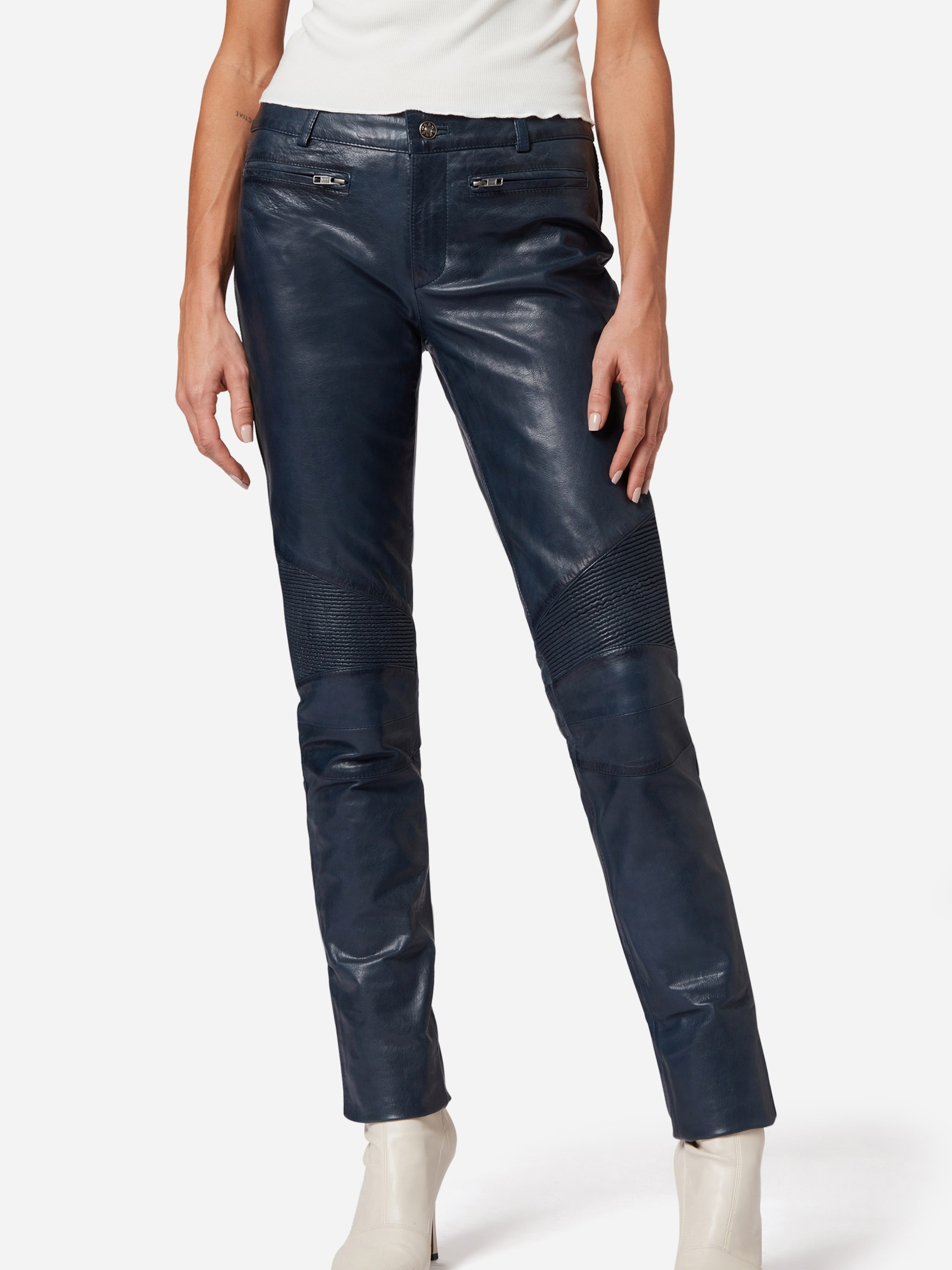 blue leather pants womens