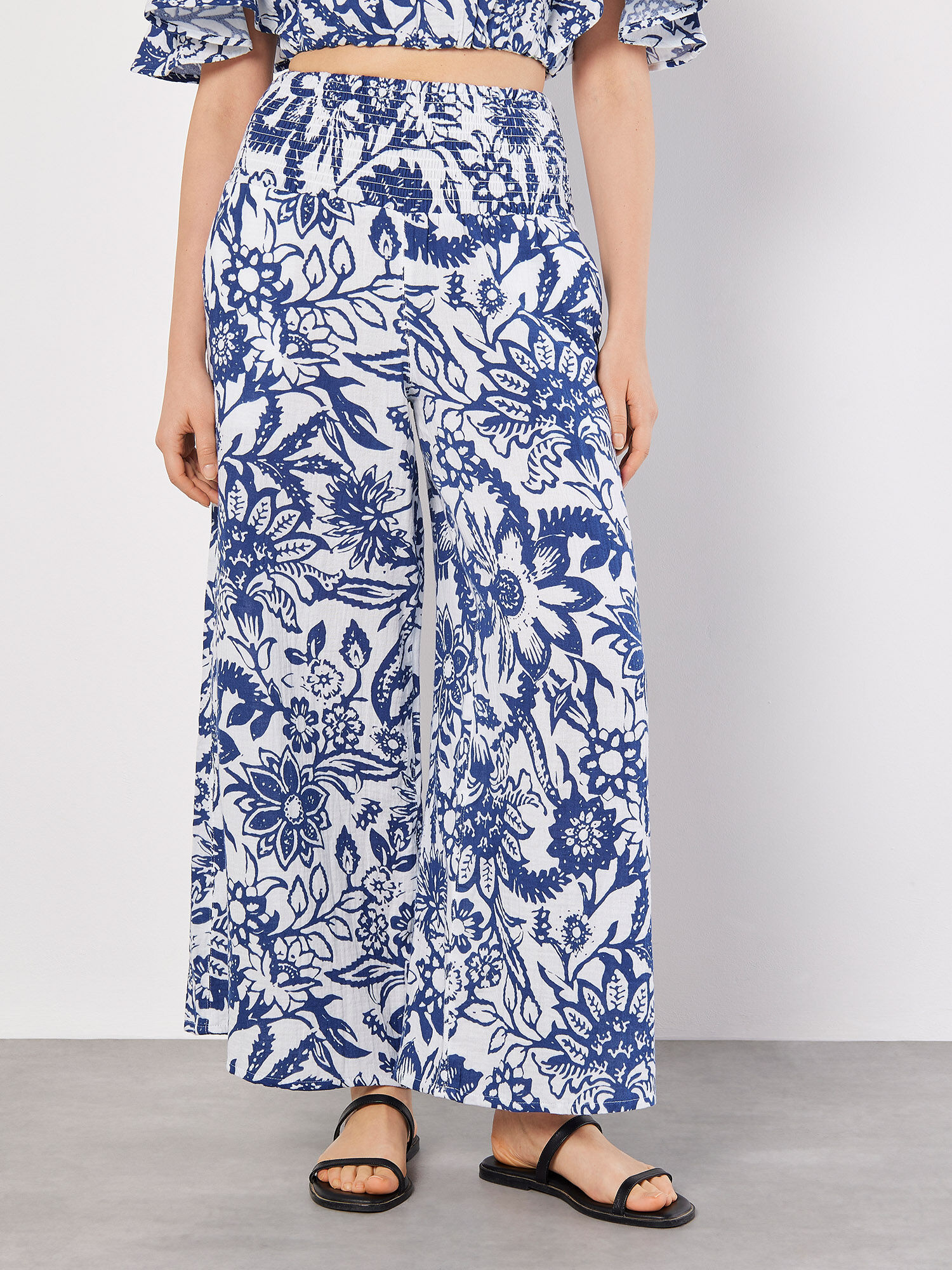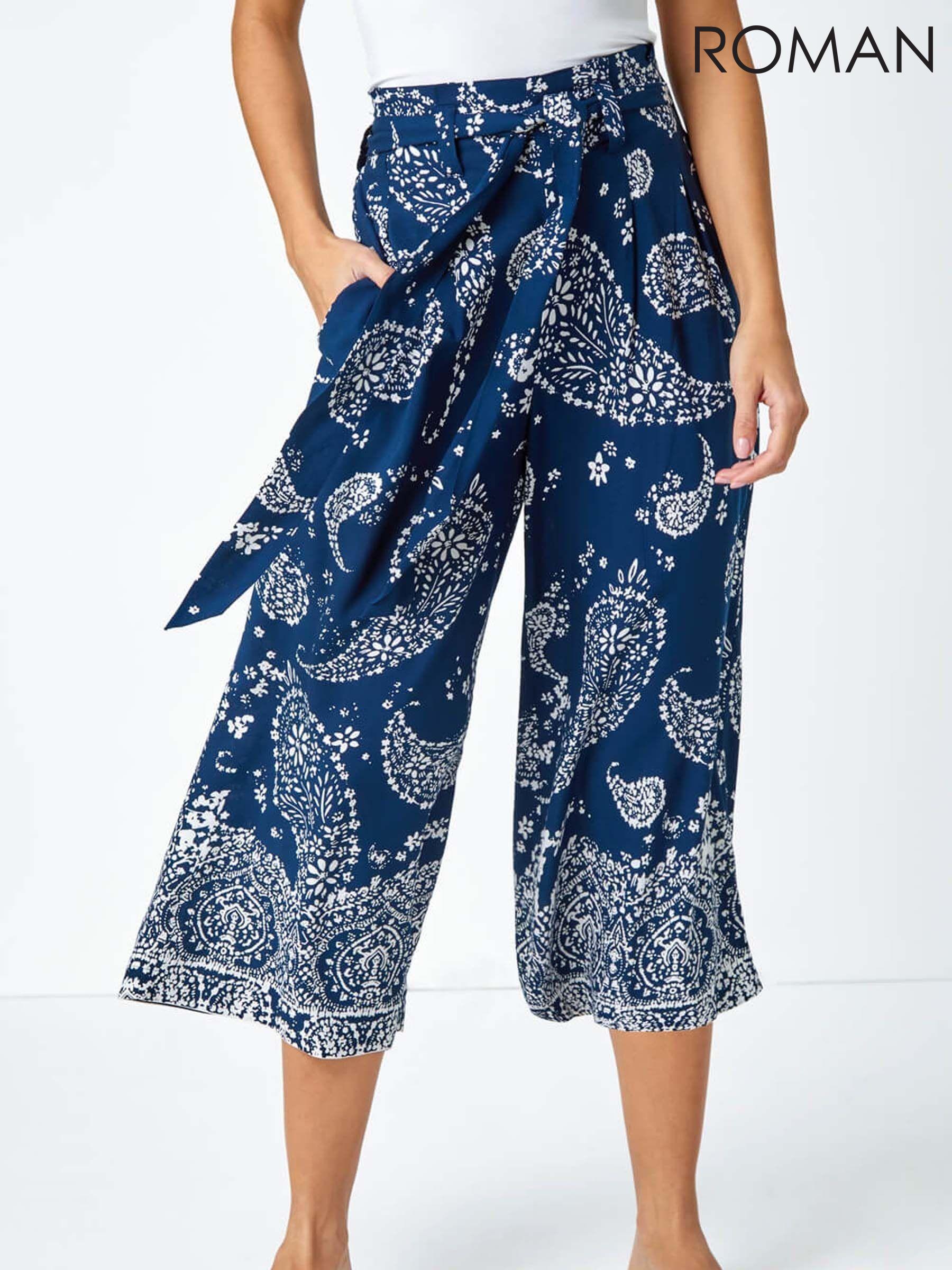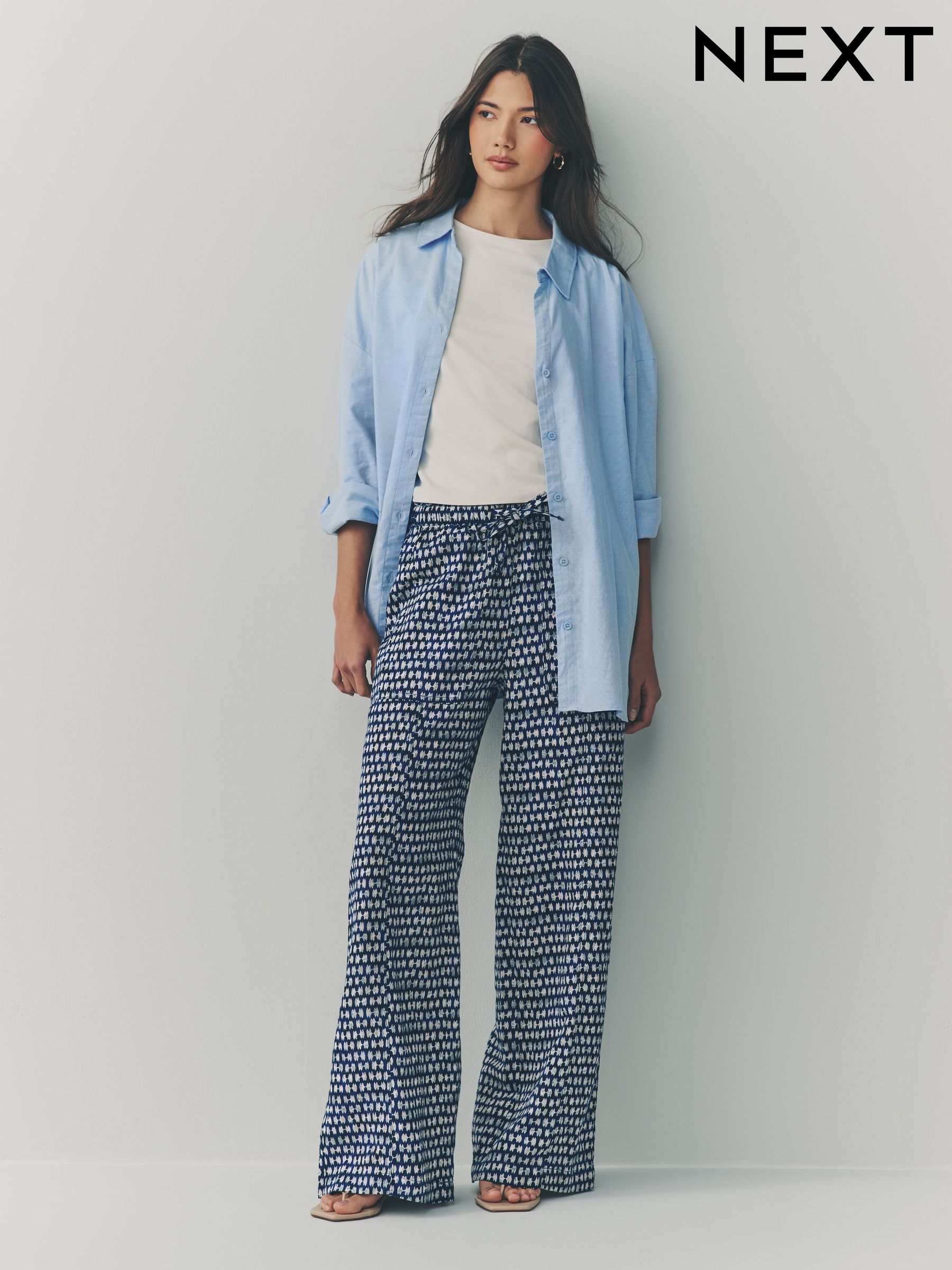 blue patterned trousers