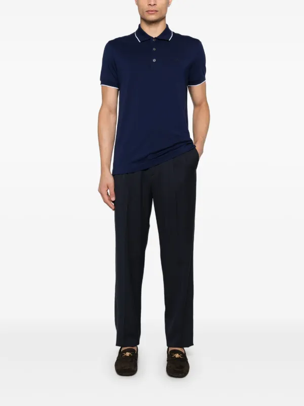 blue polo black pants
