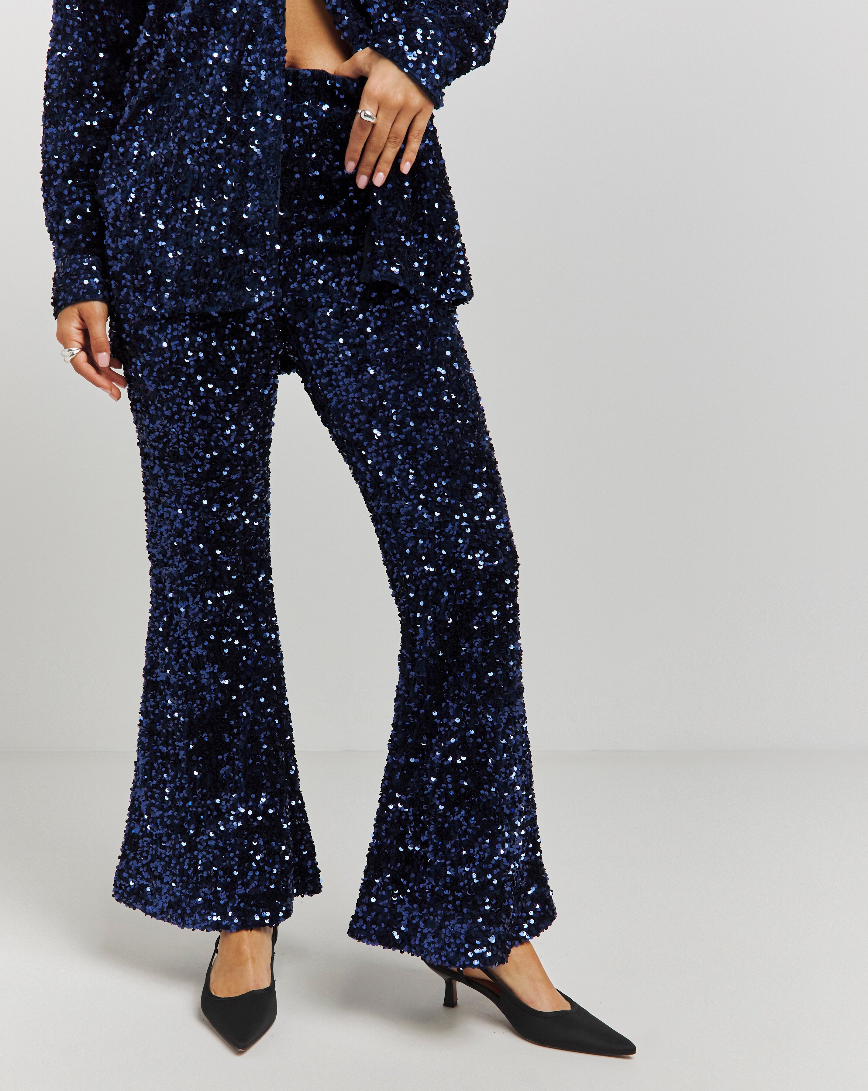 blue sequin pants