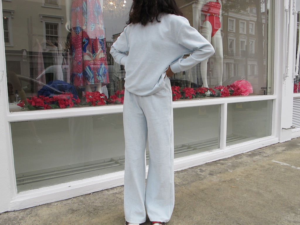 blue velour joggers