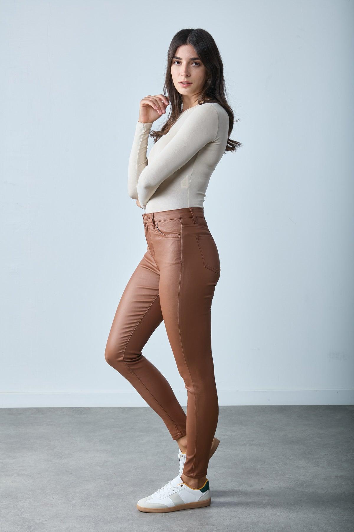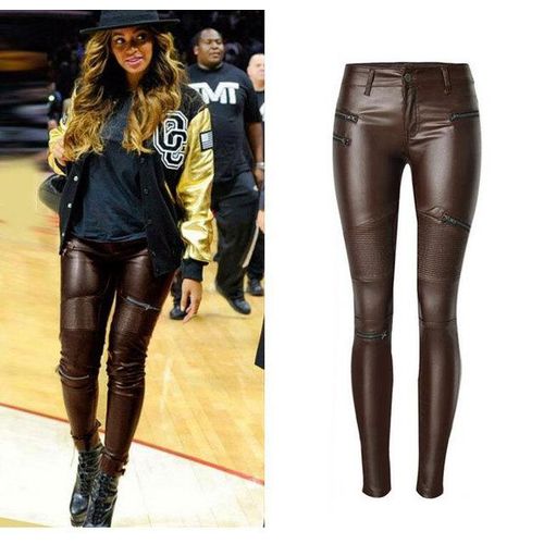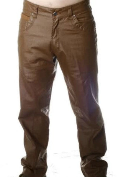 brown coated pants