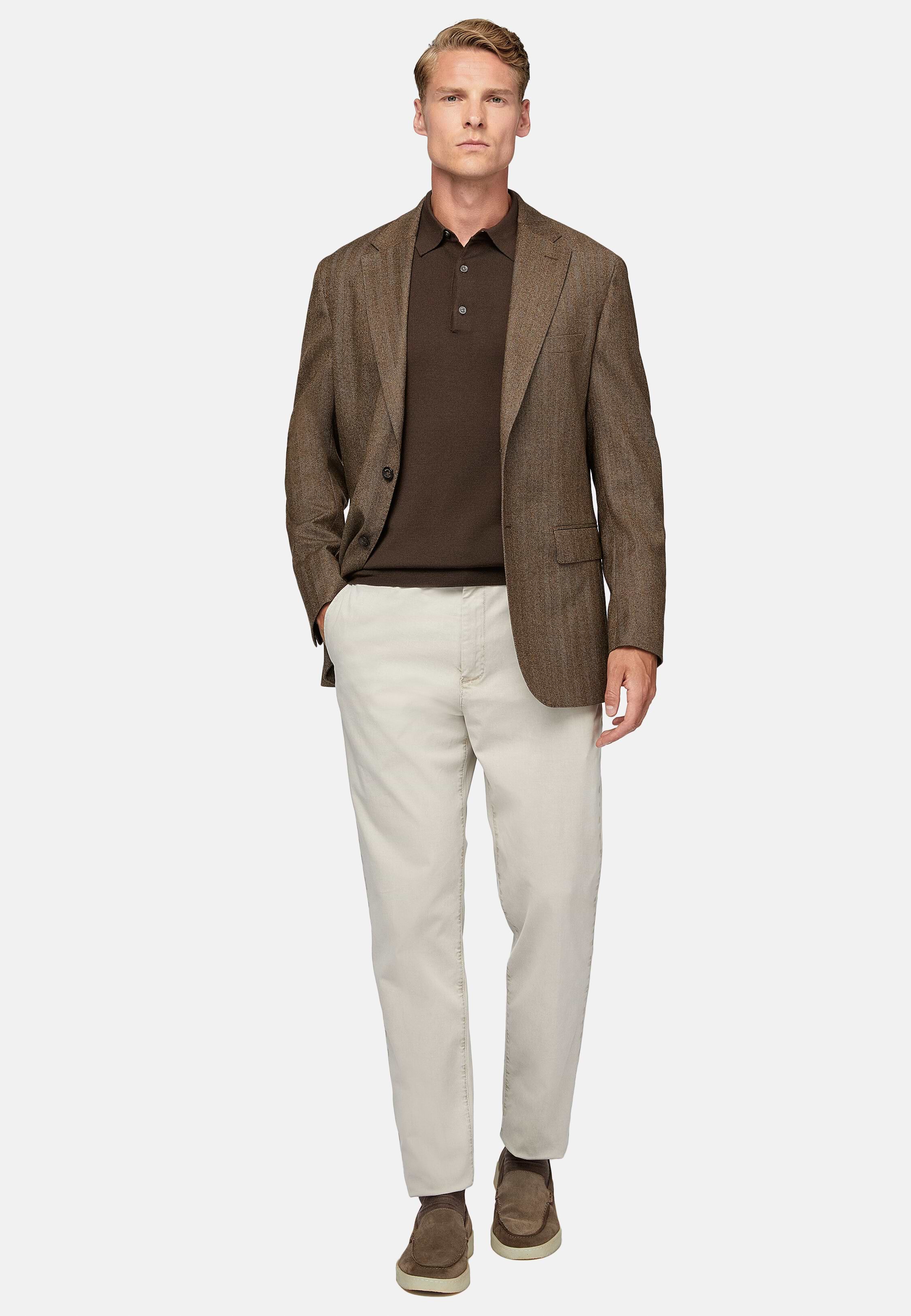 brown jacket grey pants