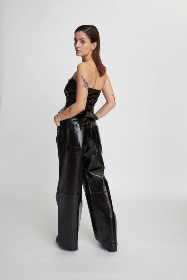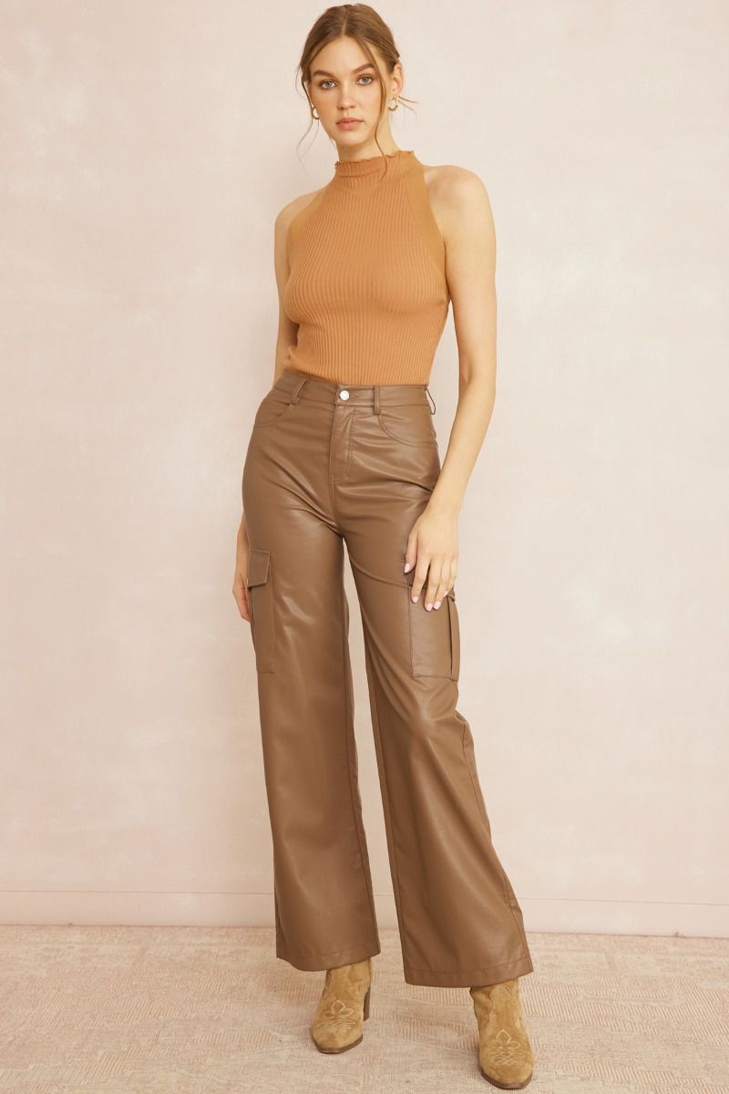 brown leather bell bottom pants