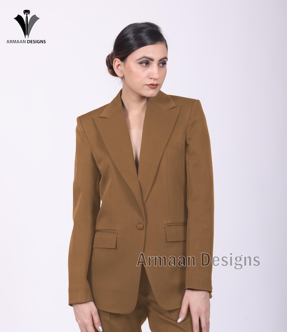 brown pantsuit