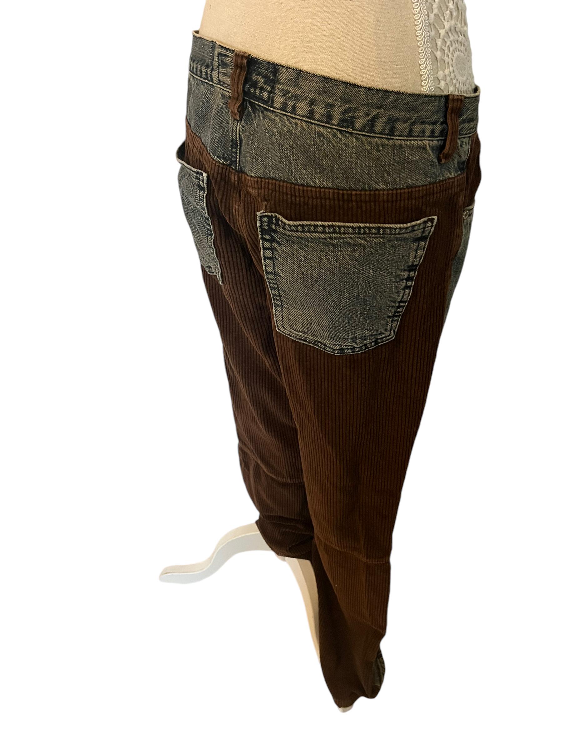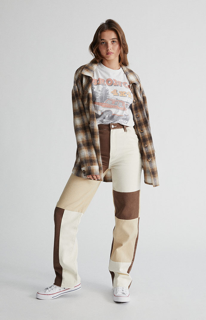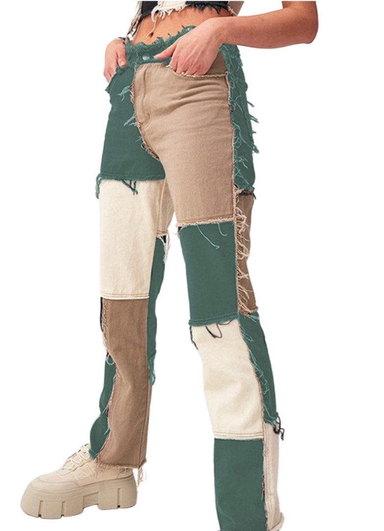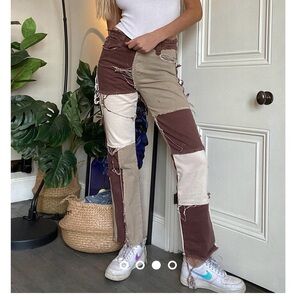 brown patchwork denim boyfriend jeans