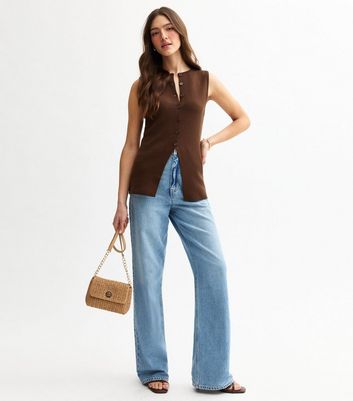 brown split hem jeans