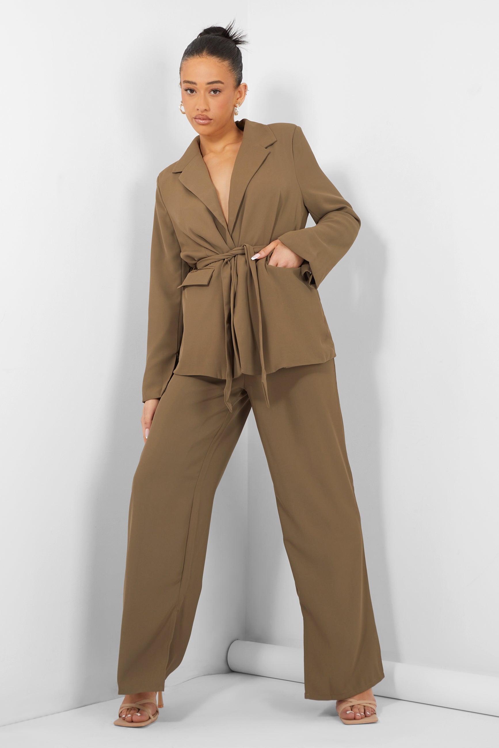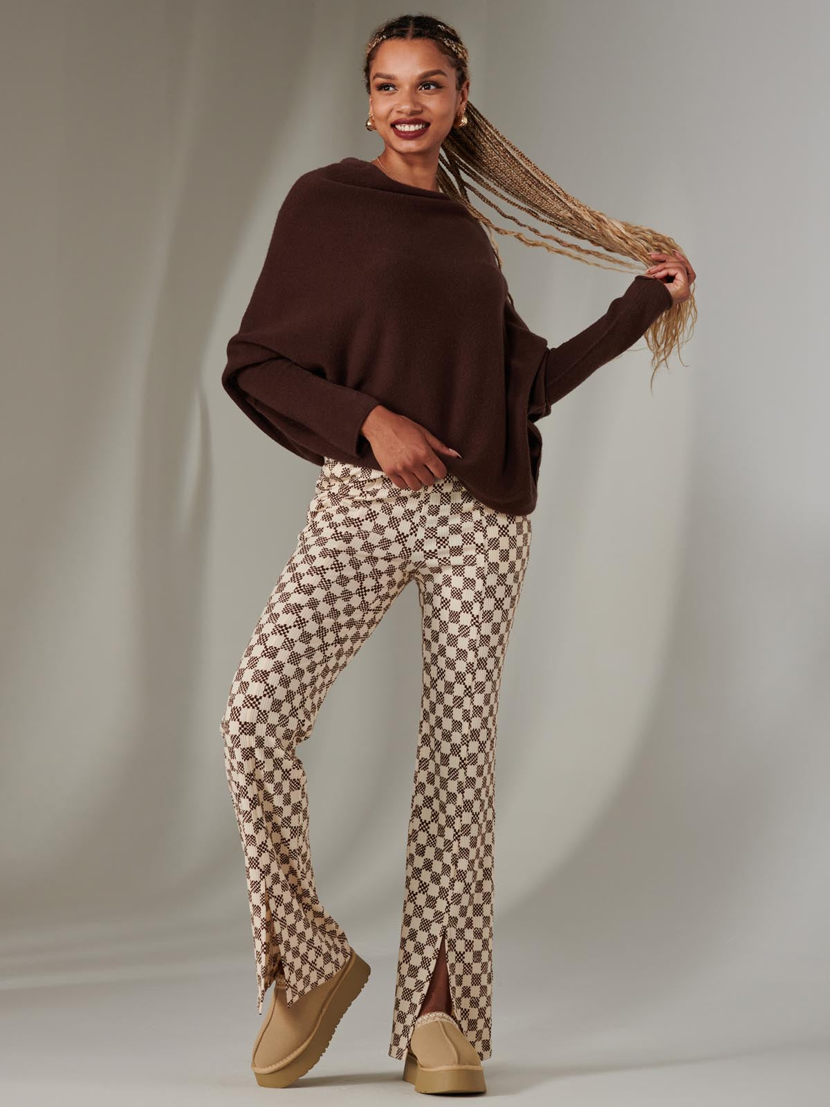 brown split hem pants