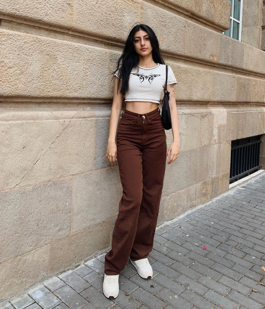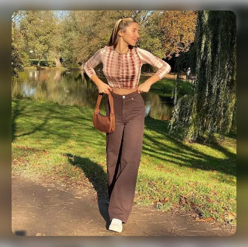 brown top and jeans